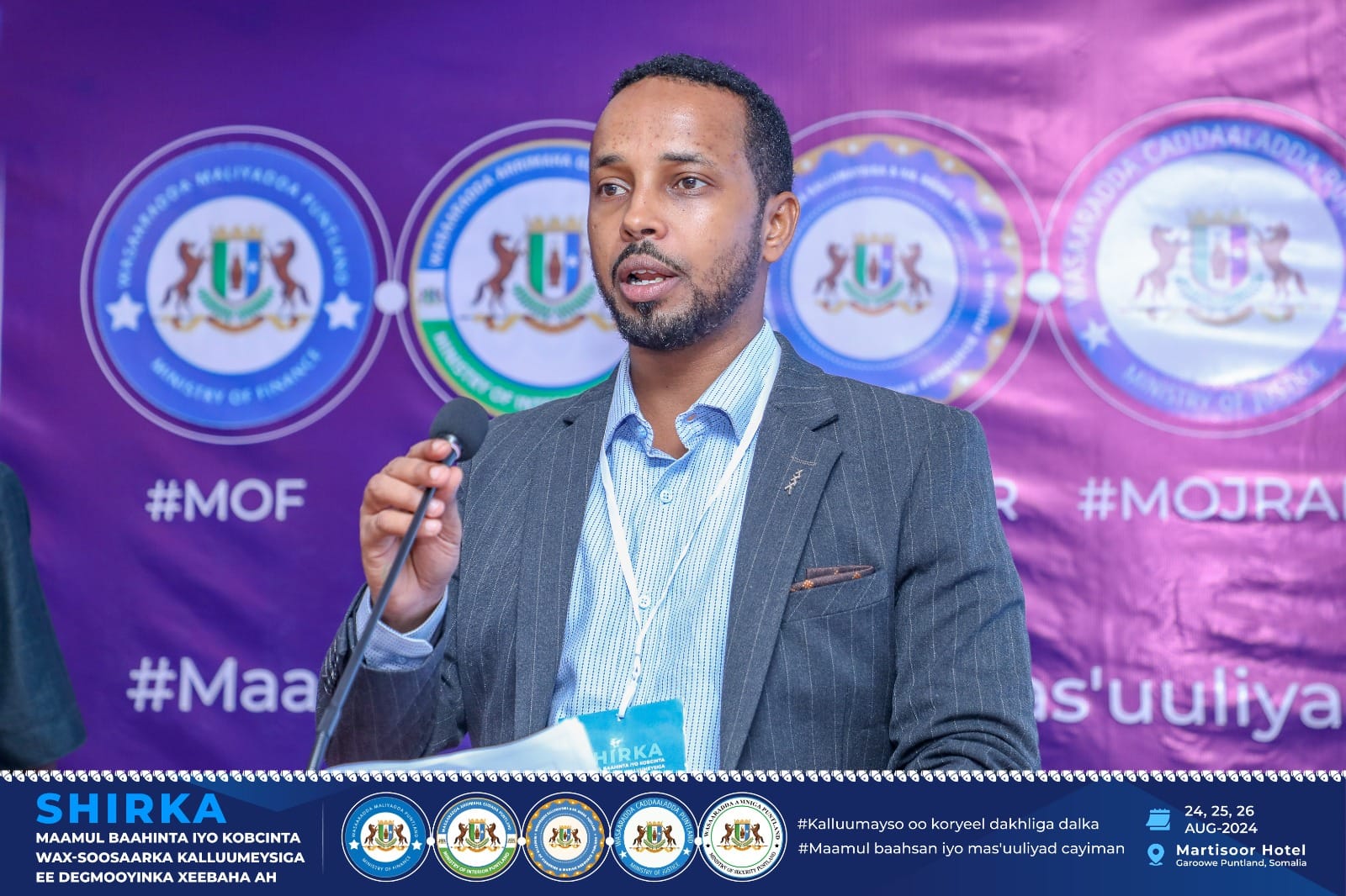 Tababarkan waxaa bixiyey khuburada arrimaha shuruucda Wasaaradda Maaliyadda waxana daah-furay Wasiir Ku-xigeenka Dakhliga Wasaaradda Maaliyadda, sidoo kale waxaa ka soo qayb galay Agaasimayaasha Guud ee Wasaaradaha Maaliyadaa iyo Arrimaha Gudaha.