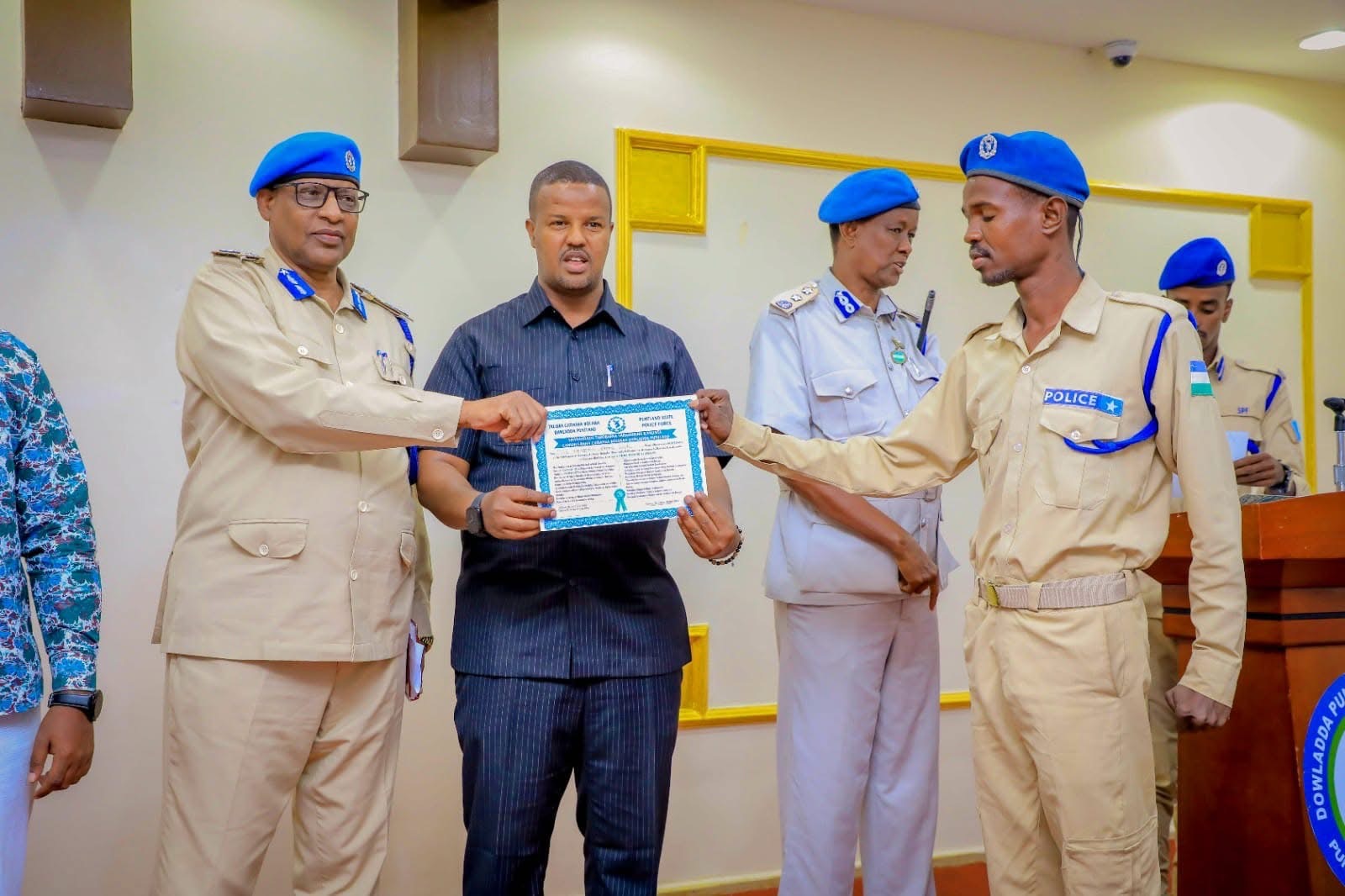 Dhagax dhiga dhismaha waxaa ka qayb galay Ku-simaha Xisaabiyaha Guud ee Dowladda, Agaasime Ku-xigeenka Guud ee Dakhliga, Agaasimaha waaxda Cashuuraha Berriga, Xisabiyaha Wasaardda Maaliyada gobalka Nugaal, Maamulaha Cashuuraha Berriga Iyo Maamulka degmada Eyl.