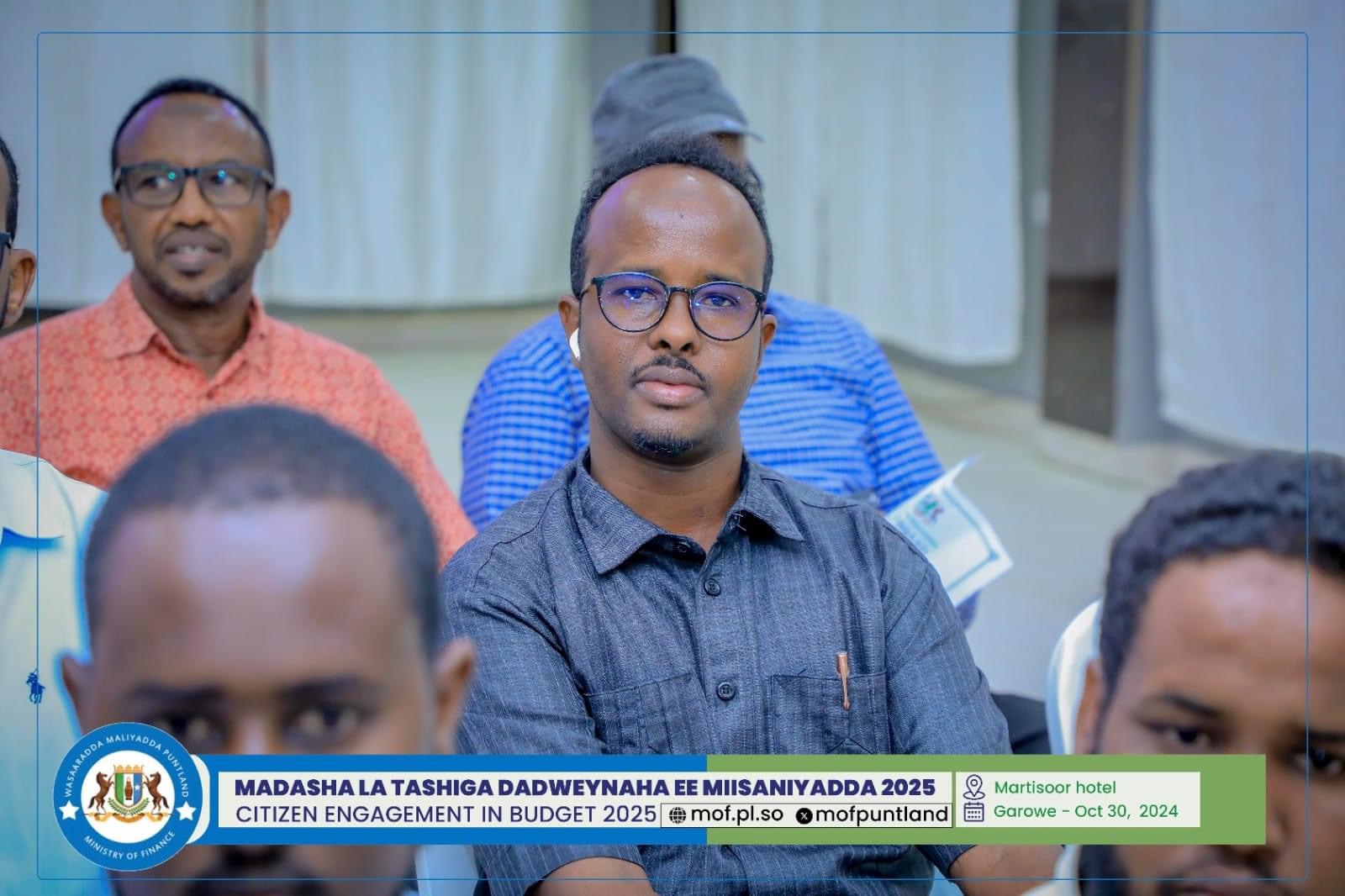 GAROOWE – Madasha la latashiga Dadwayanaha ee Miisaaniyadda Dowladda Puntland  2025 ayaa ka furmay hoolka shirarka ee Martisoor Hotel Garoowe.