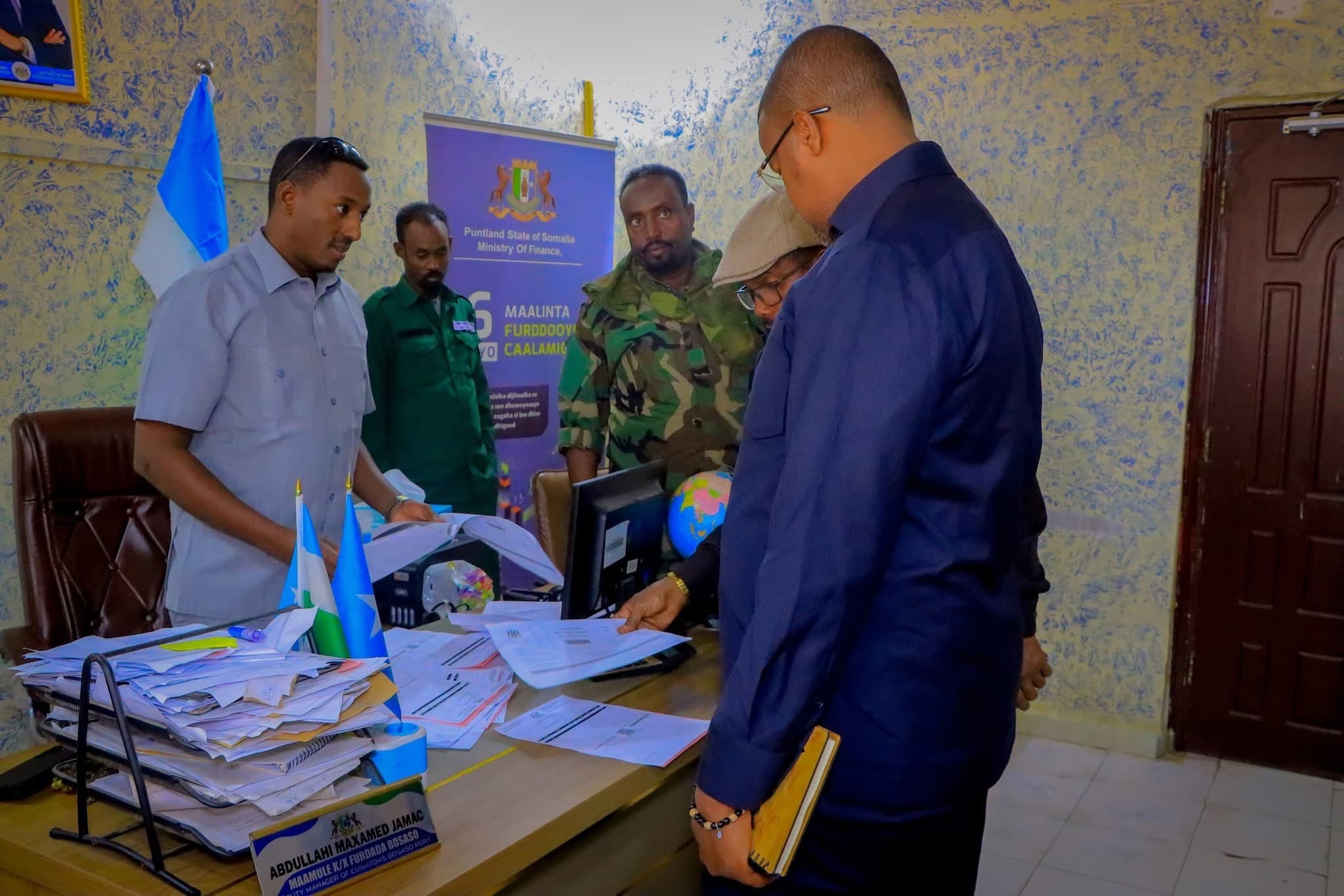 Agaasimaha Guud ee Wasaaradda Maaliyadda Dowladda Puntland oo Kormeer shaqo ku tagay Goobaha dakhliga Wasaaradda ee Boosaaso[Sawirro]
