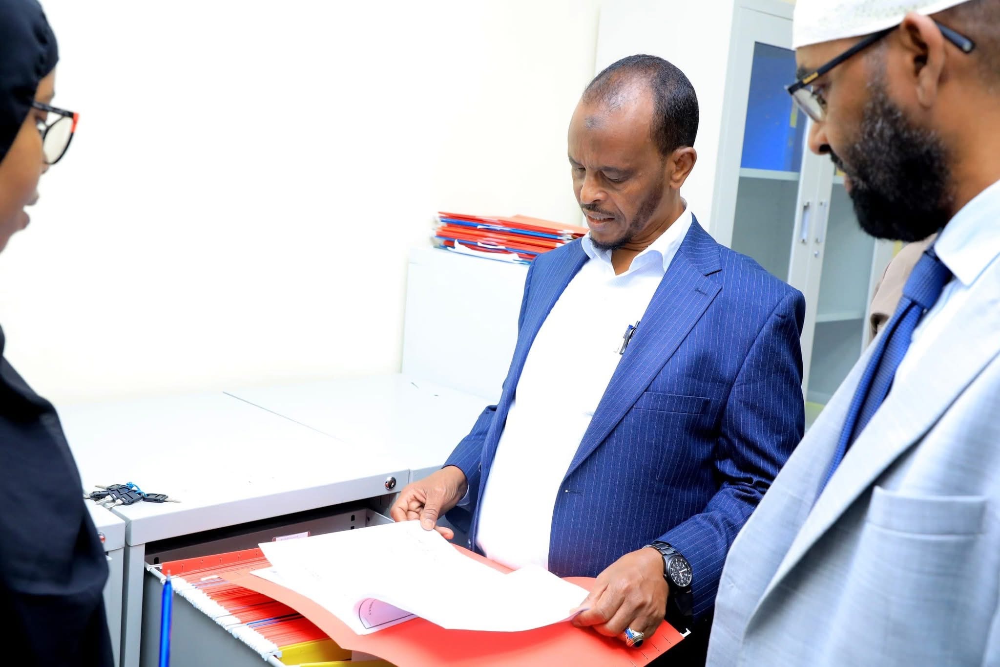 GAROOWE – Wasiirka Wasaradda Maaliyadda Dowladda Puntland oo ay waheliyan Wasiir ku-xigeenada Wasaaradda iyo Agaasimaha Guud ee Wasaaradda ayaa kormeeray xafiisyada kala duwan ee Xarunta dhexe ee Wasaaradda.