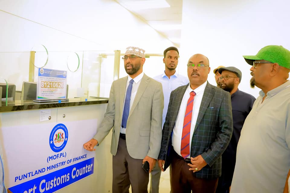 Wasiirada ayaa ugu horayn booqday Kastamka Wasaaradda Maaliyaddu ku leedahay garoonka diyaaradaha Boosaaso, waxaana ay halkaasi kula kulmeen Maamulaha Kastamka oo uga warbixiyey shaqooyinka socda ee ay ka mid yihiin cashuurista badeecadaha ay wadaan Diyaaradaha wada kaargooga waxana ay booqdeen xafiisyada.