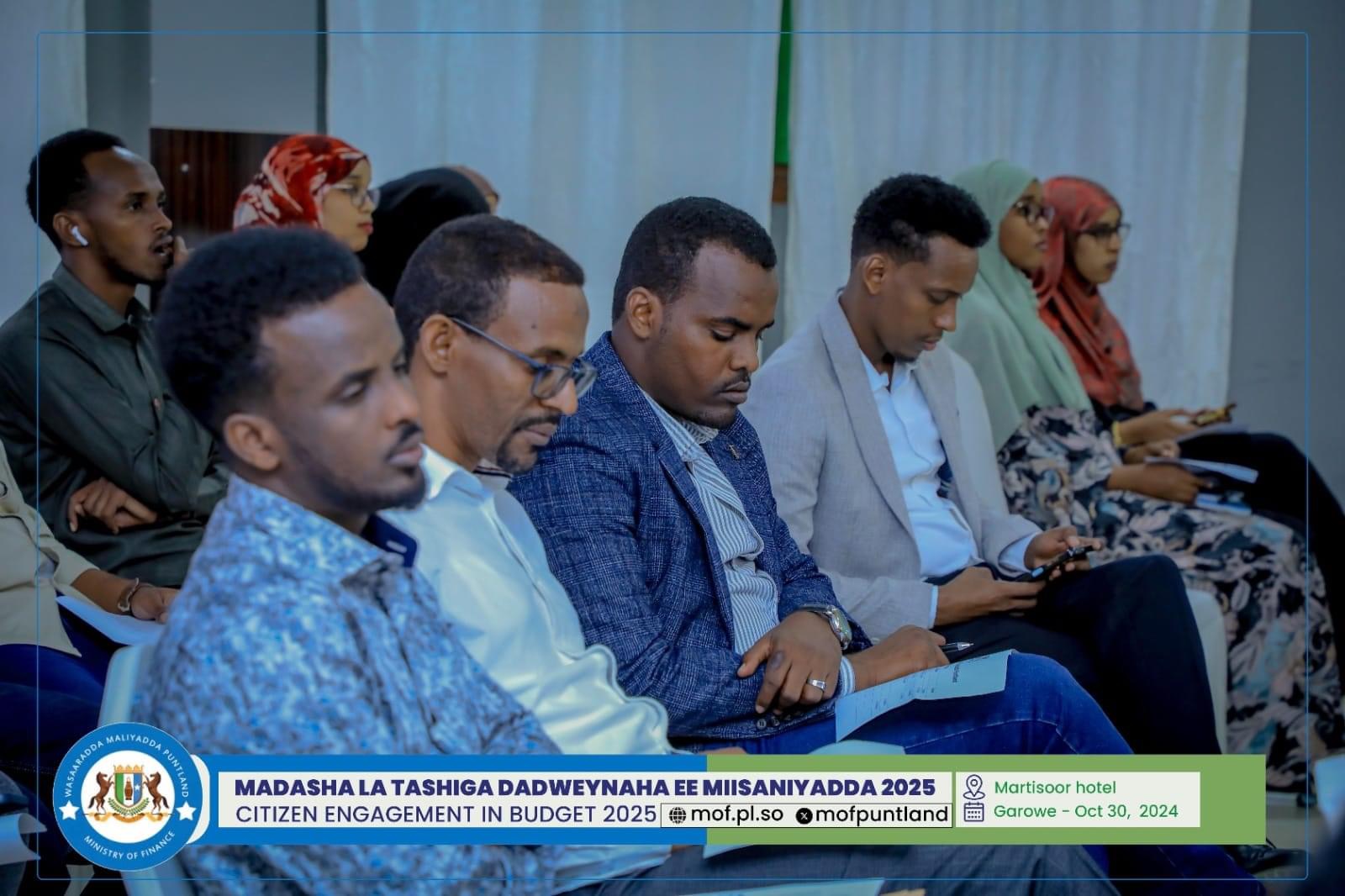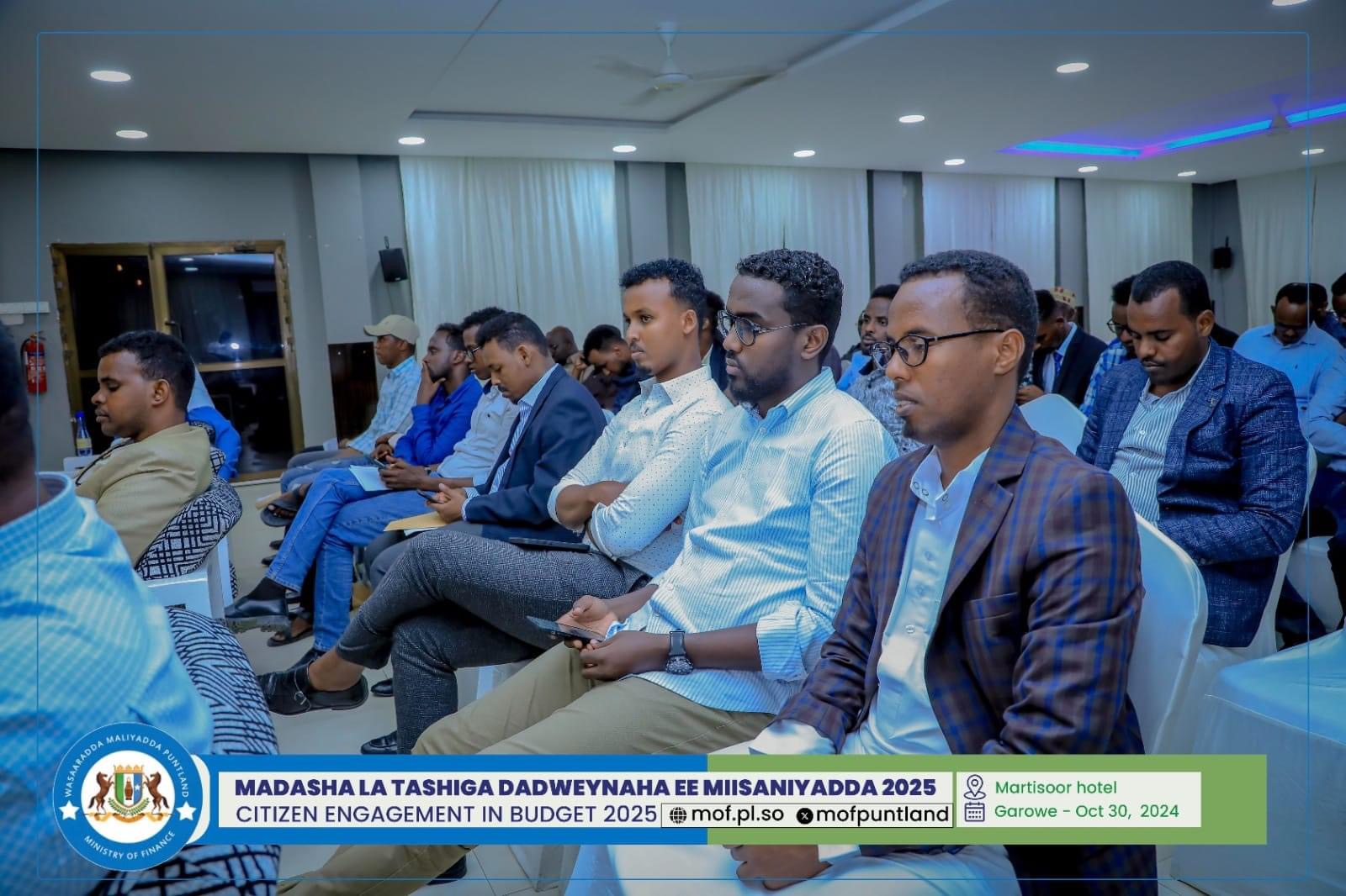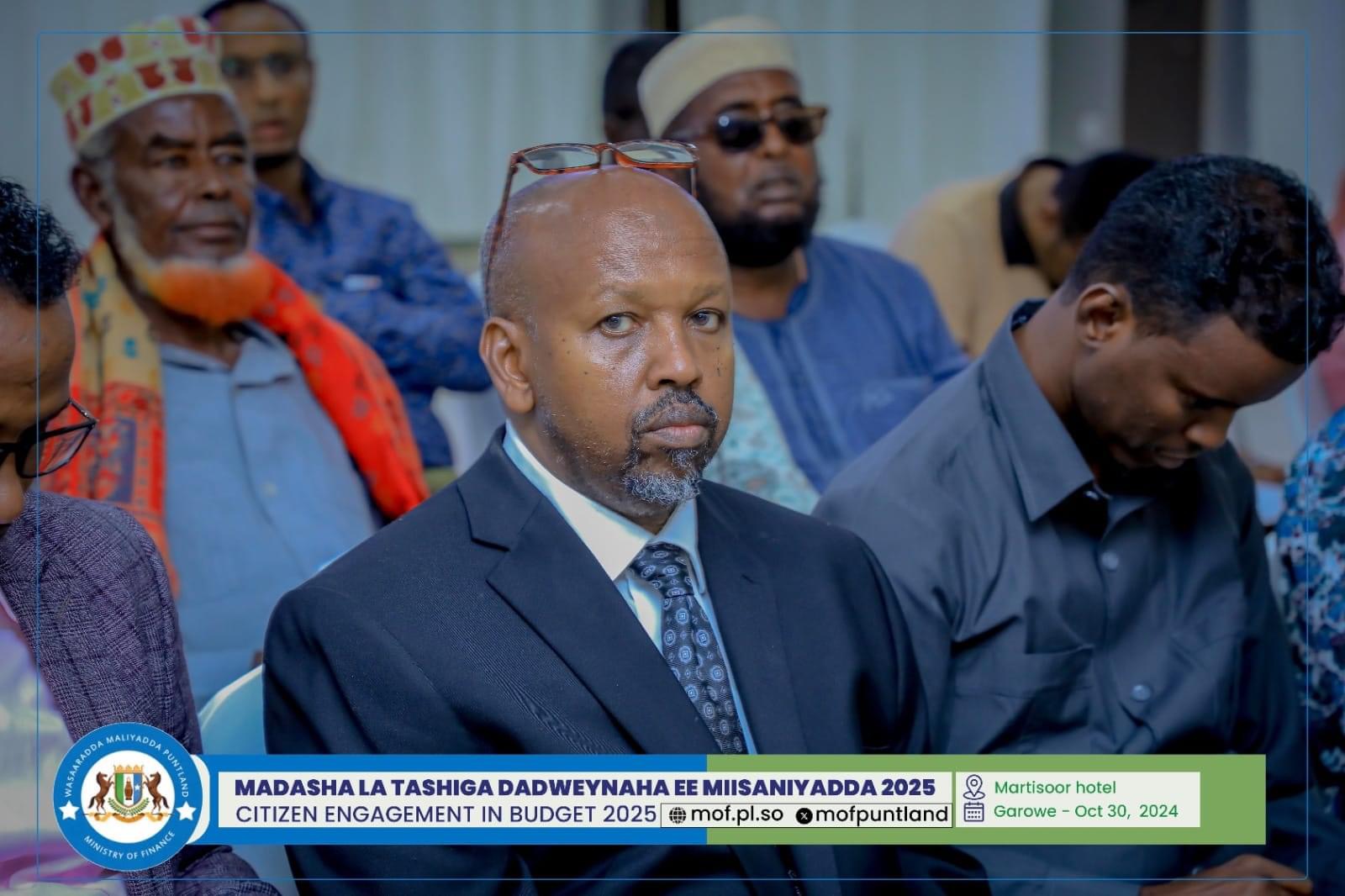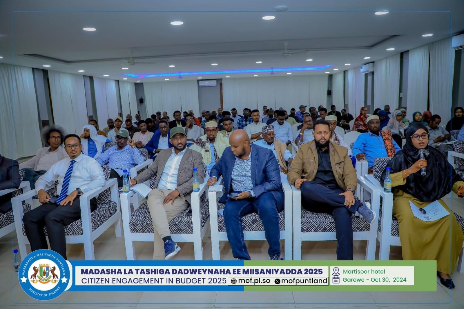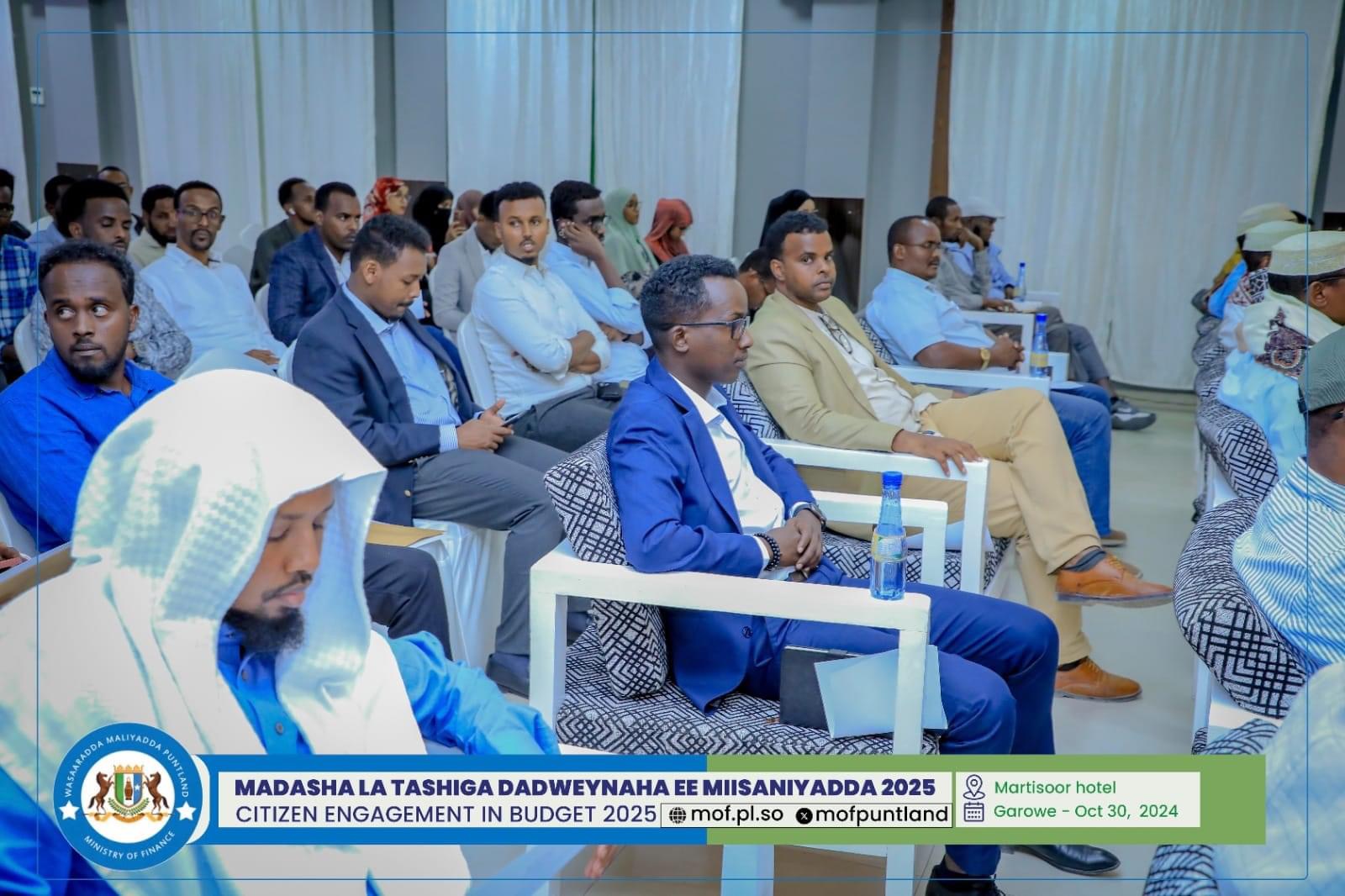 GAROOWE – Madasha la latashiga Dadwayanaha ee Miisaaniyadda Dowladda Puntland 2025 ayaa ka furmay hoolka shirarka ee Martisoor Hotel Garoowe.