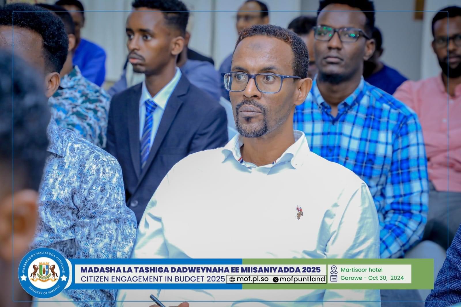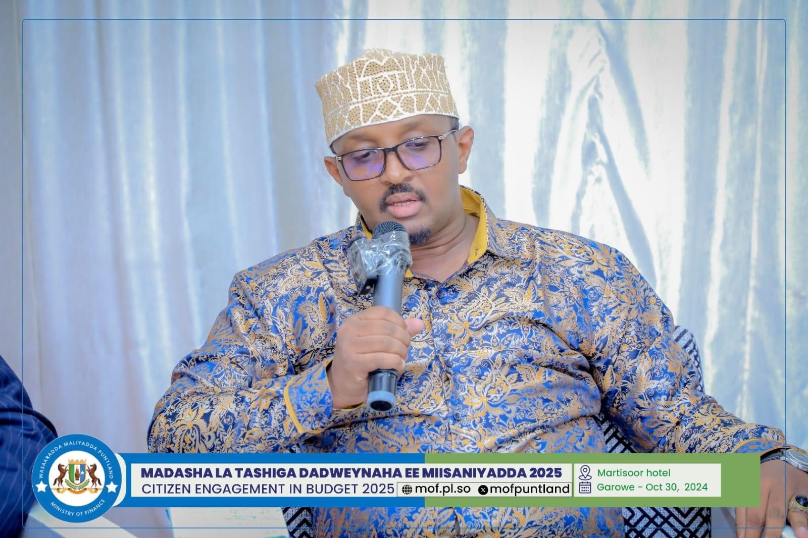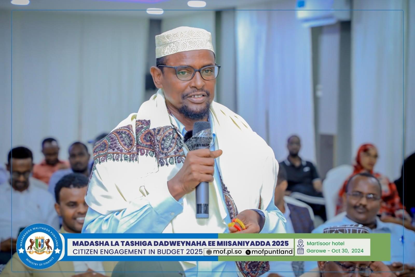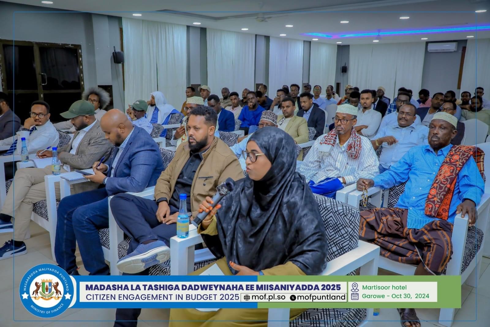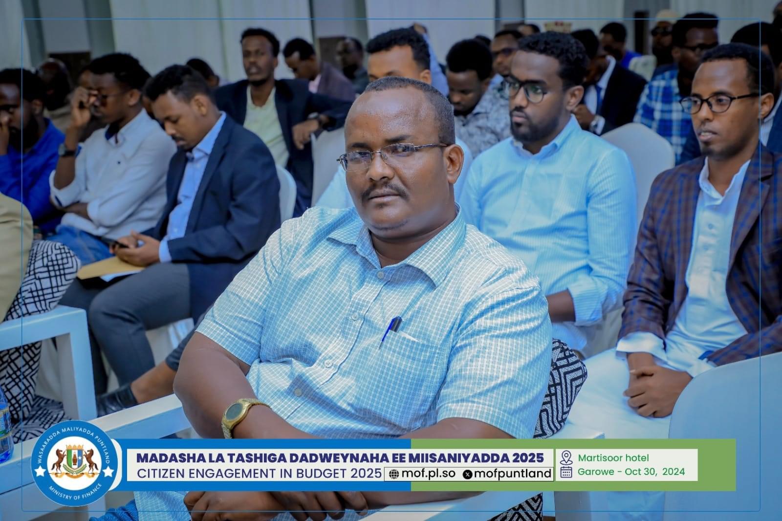 GAROOWE – Madasha la latashiga Dadwayanaha ee Miisaaniyadda Dowladda Puntland 2025 ayaa ka furmay hoolka shirarka ee Martisoor Hotel Garoowe.