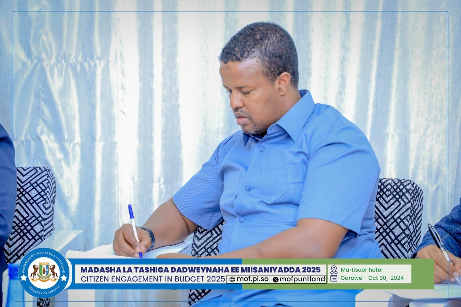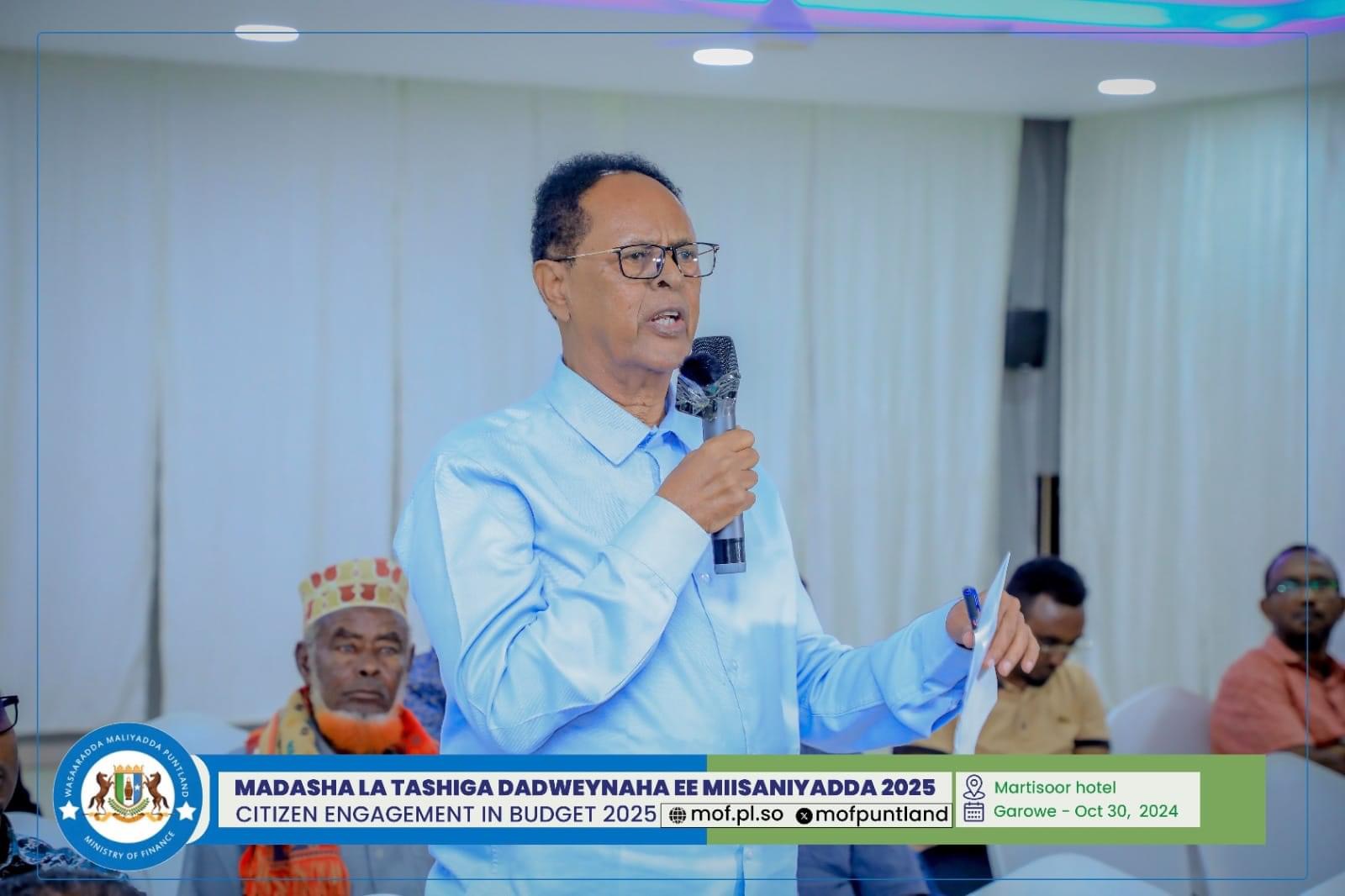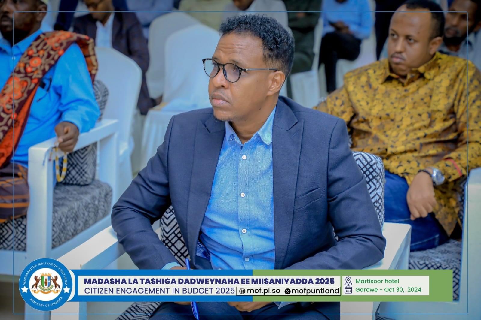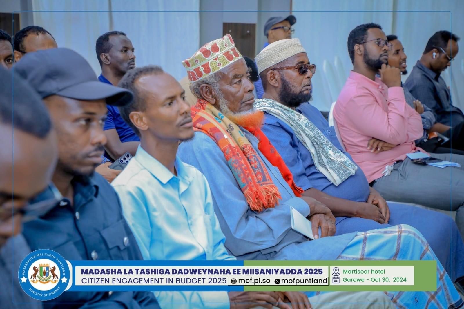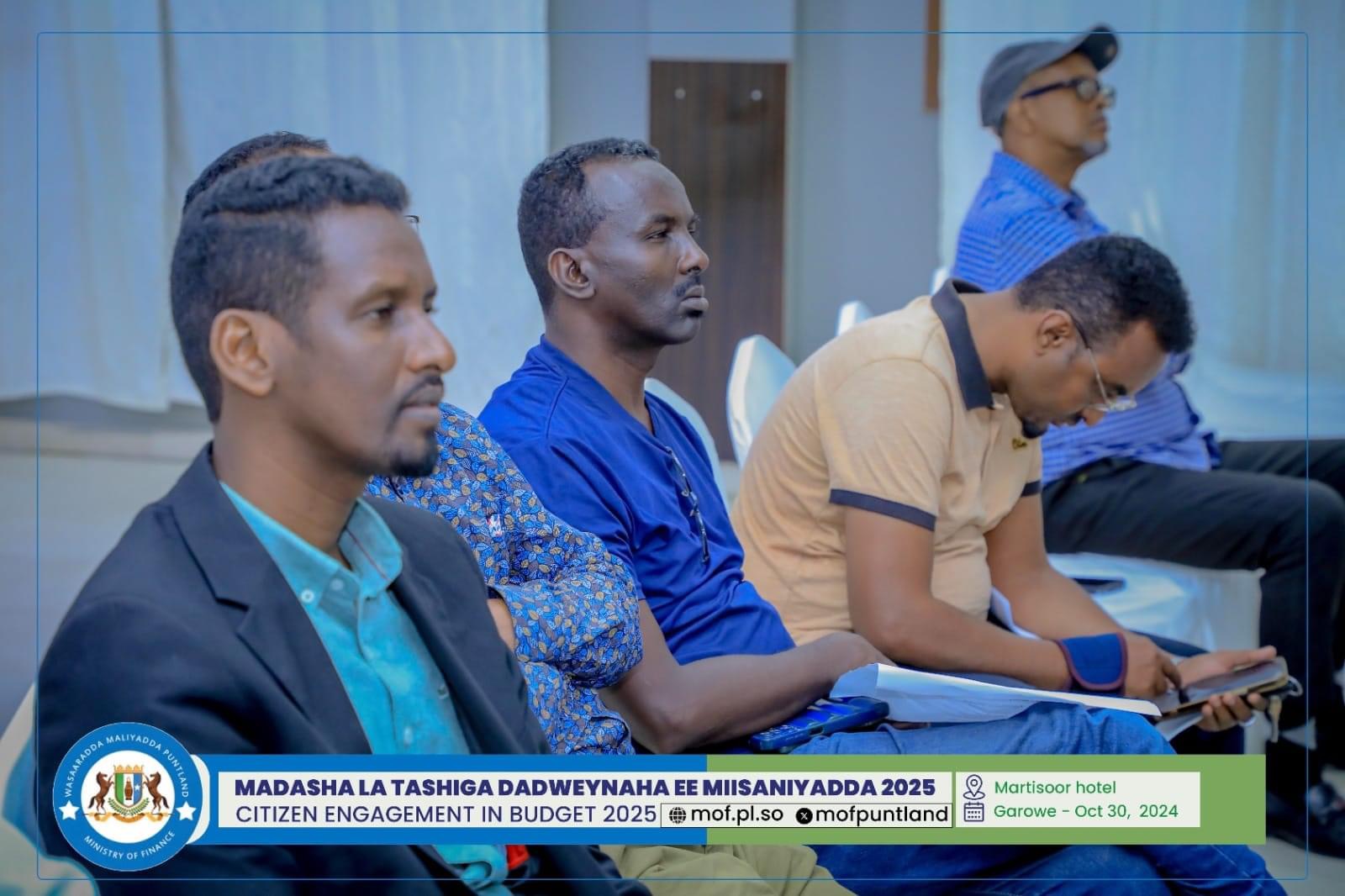 GAROOWE – Madasha la latashiga Dadwayanaha ee Miisaaniyadda Dowladda Puntland 2025 ayaa ka furmay hoolka shirarka ee Martisoor Hotel Garoowe.