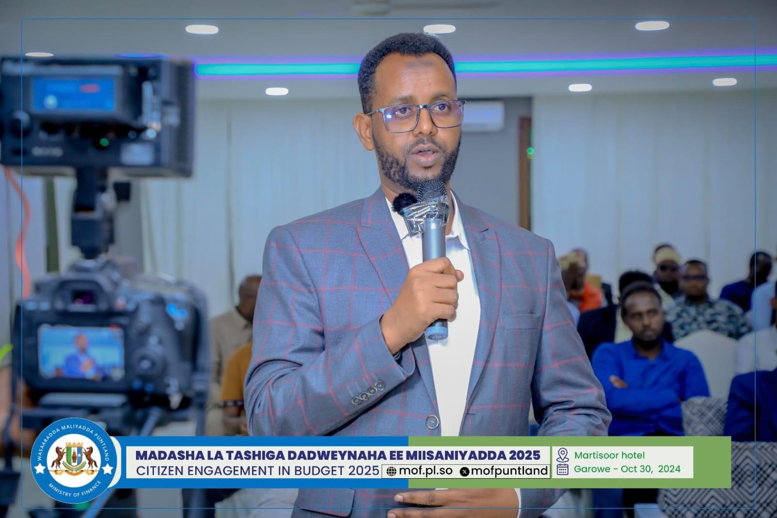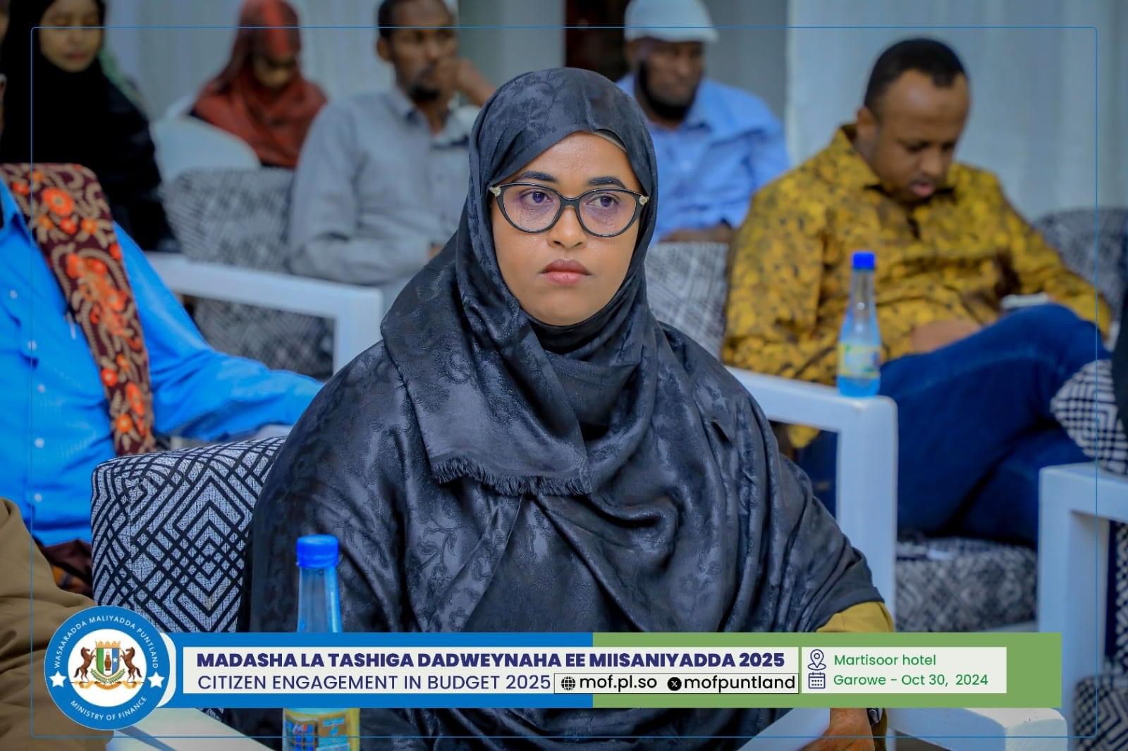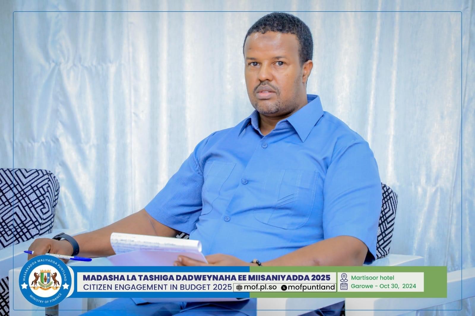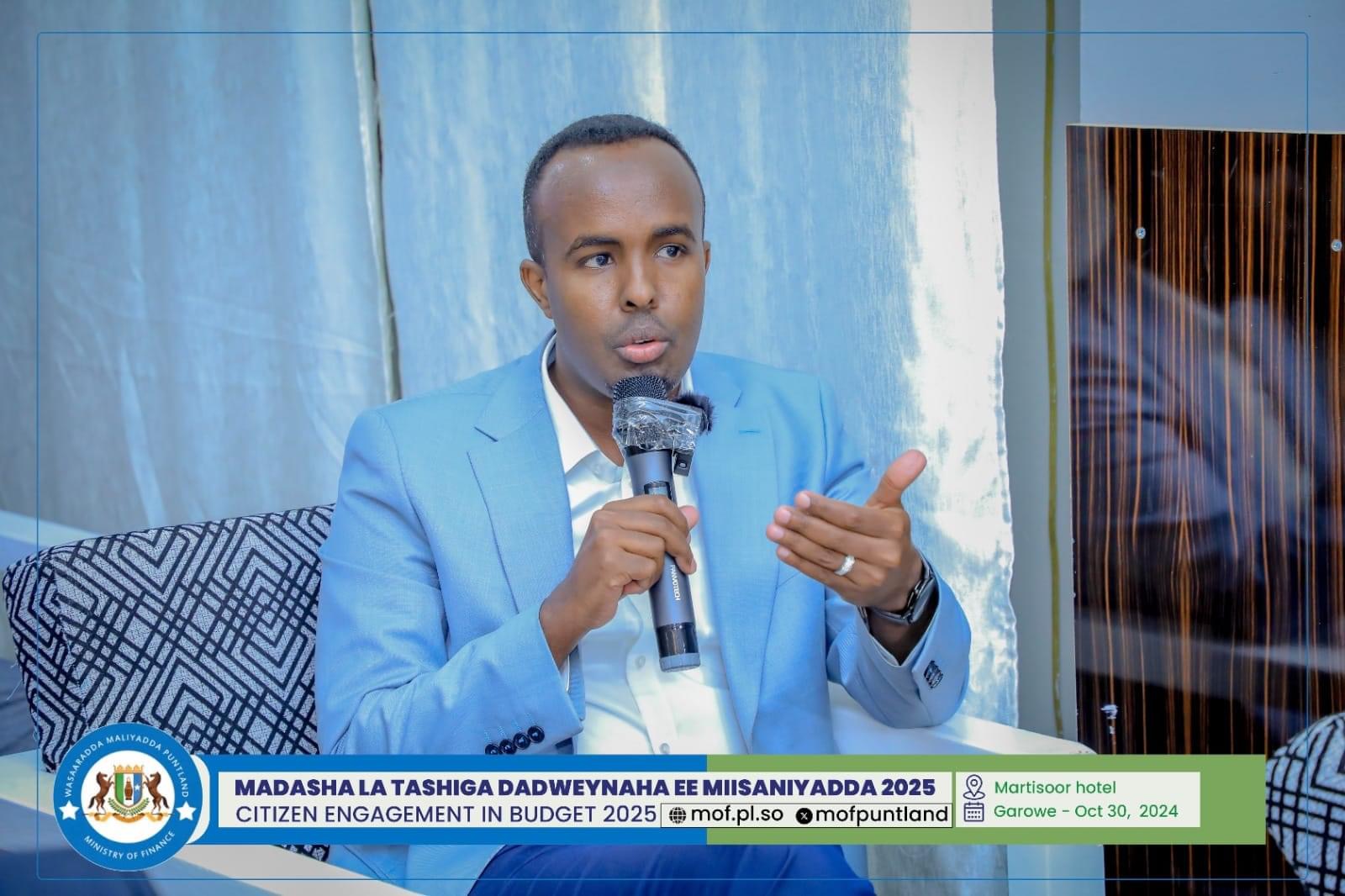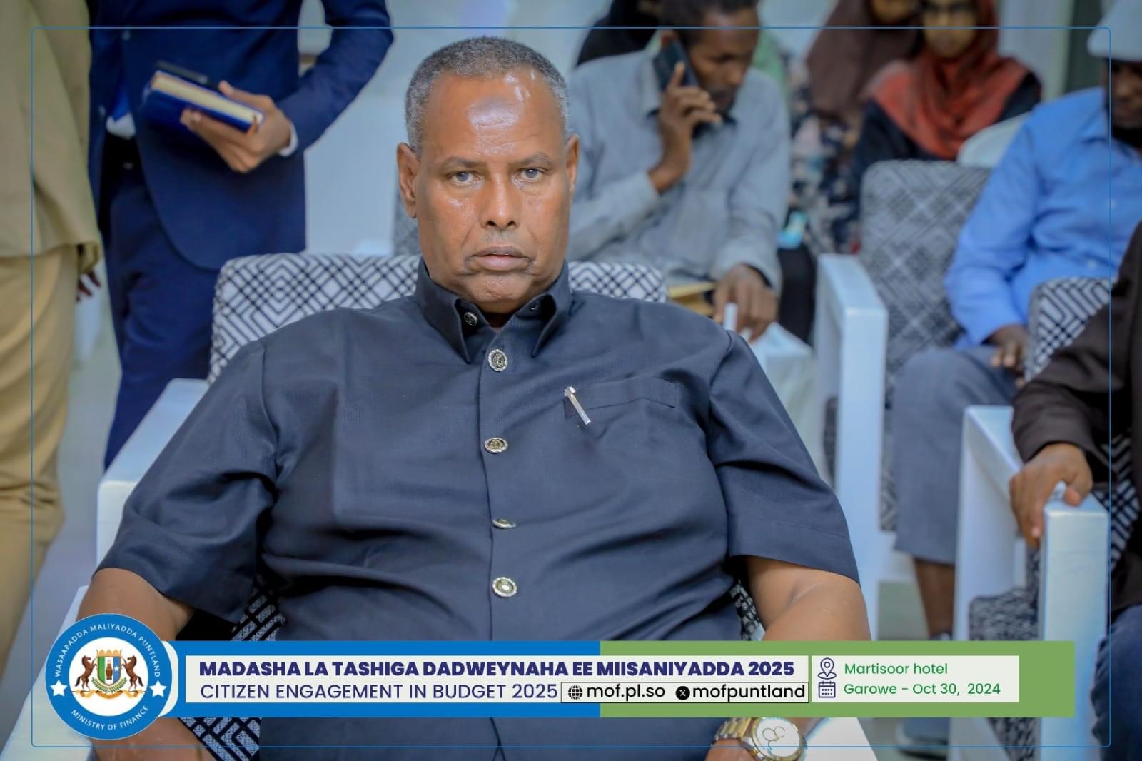 GAROOWE – Madasha la latashiga Dadwayanaha ee Miisaaniyadda Dowladda Puntland 2025 ayaa ka furmay hoolka shirarka ee Martisoor Hotel Garoowe.
