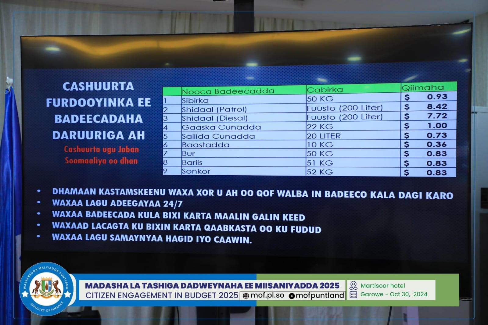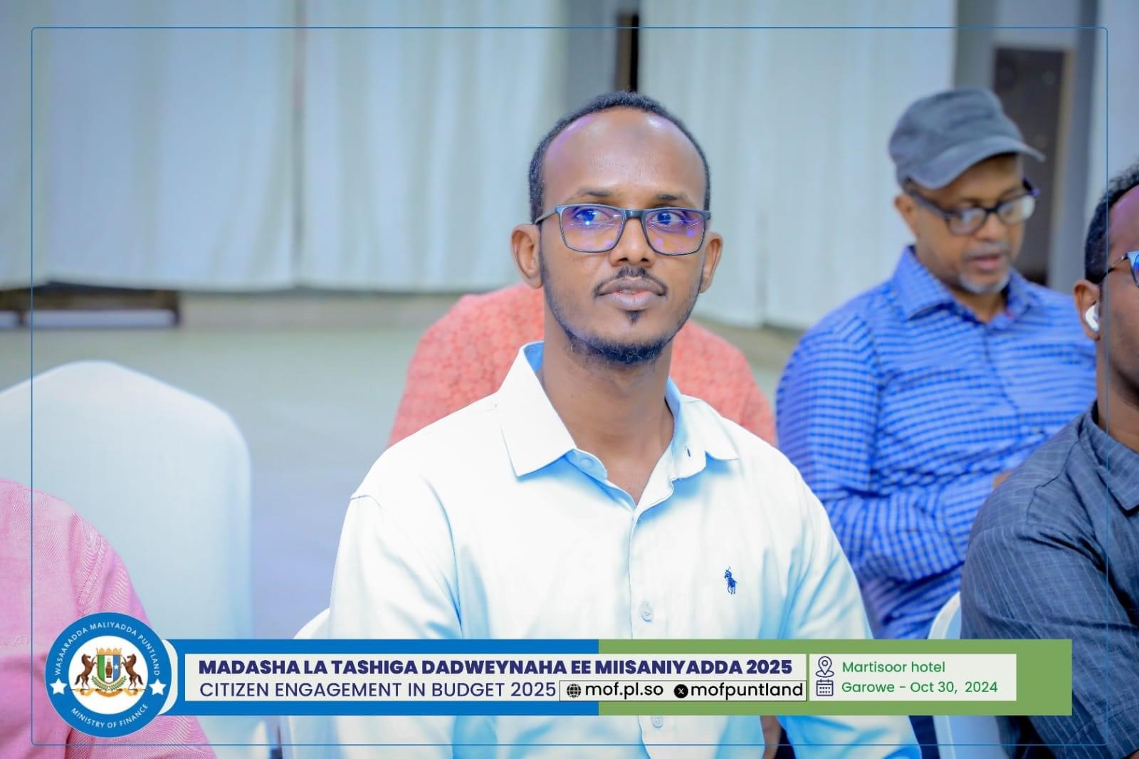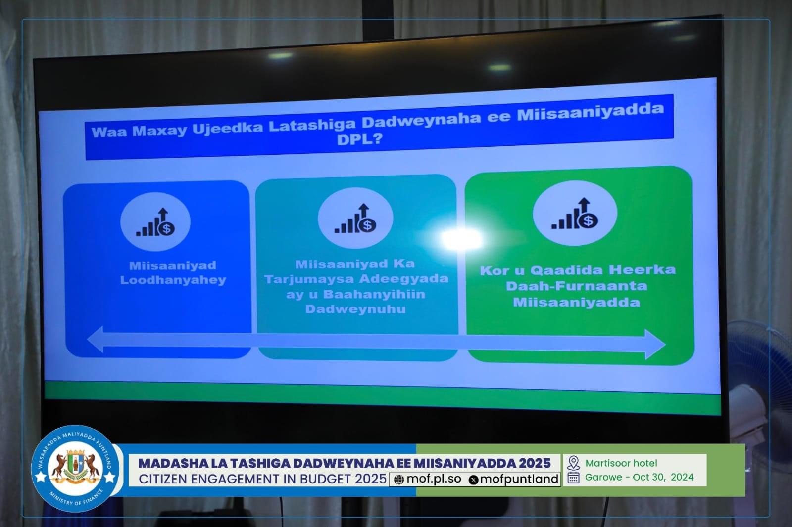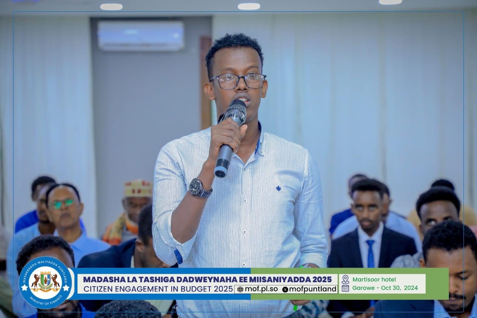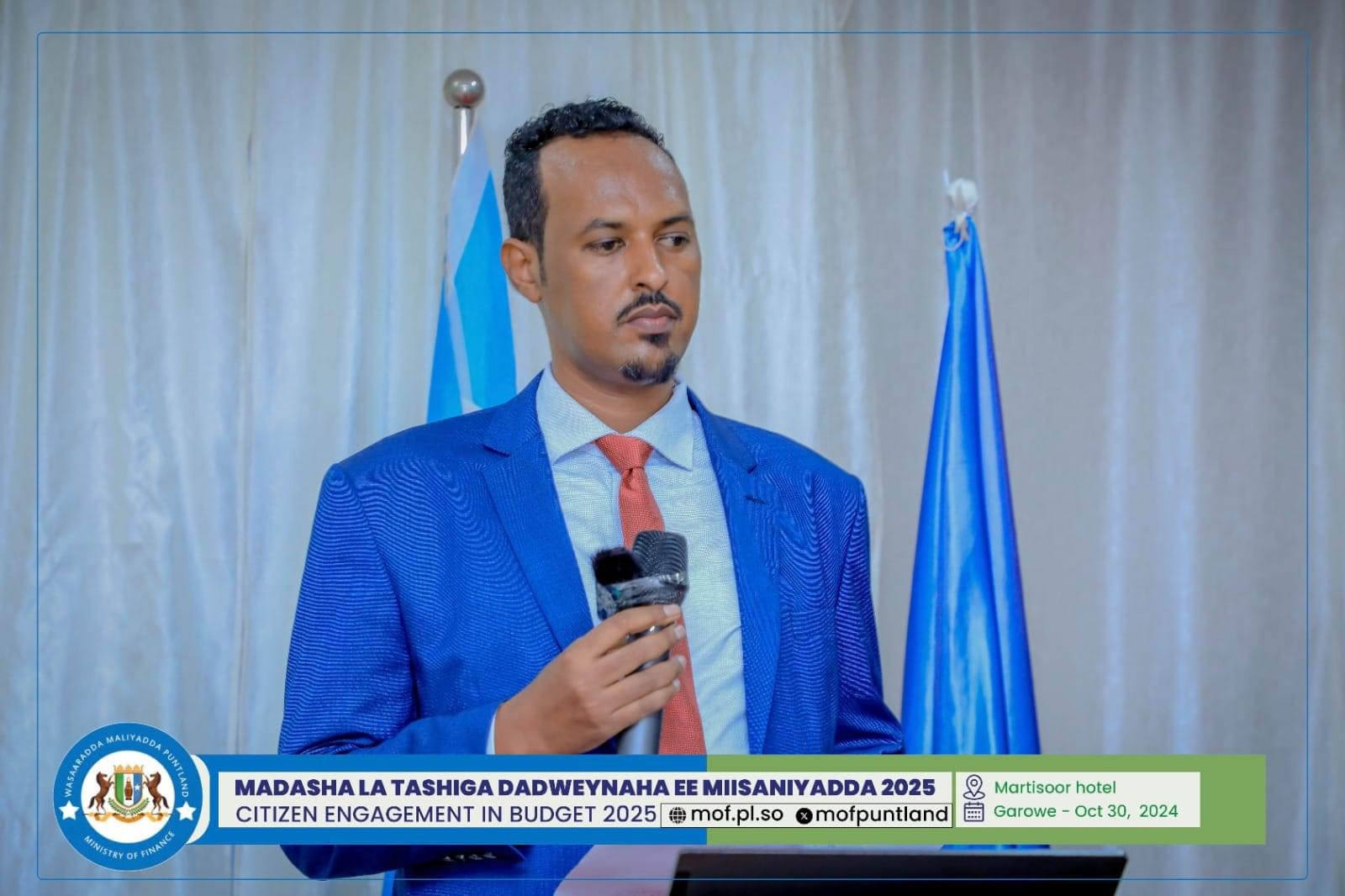 GAROOWE – Madasha la latashiga Dadwayanaha ee Miisaaniyadda Dowladda Puntland 2025 ayaa ka furmay hoolka shirarka ee Martisoor Hotel Garoowe.