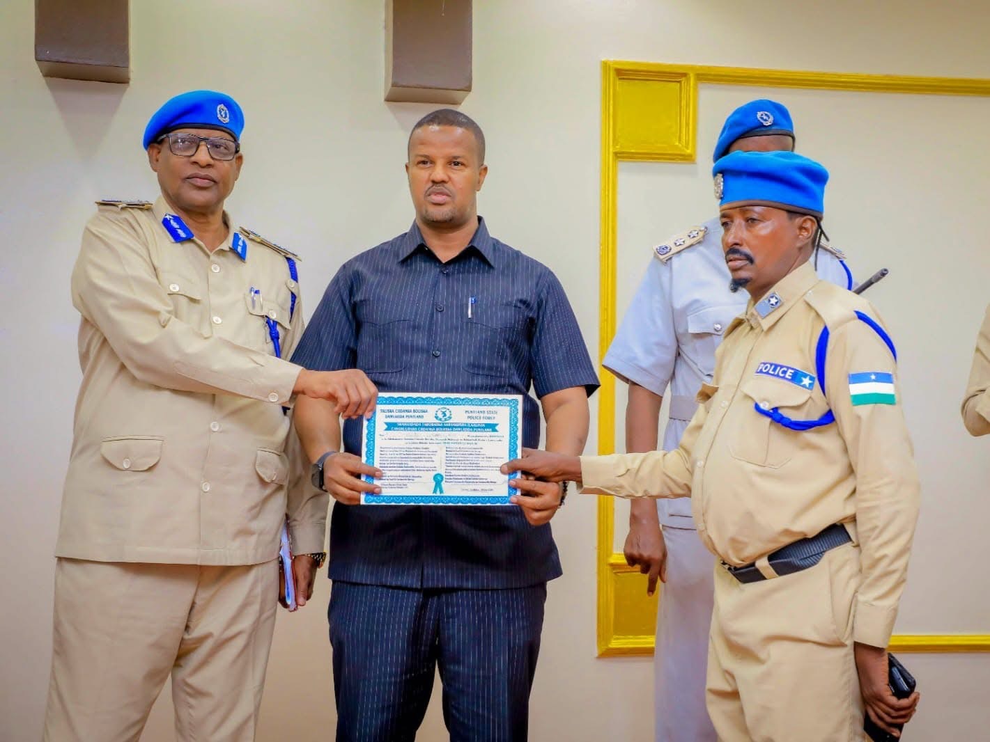 GAROOWE – Taliye Ku-xigeenka Ciidanka Booliska Dowladda Puntland S/Guuto Caydiid Axmed Nuur oo uu weheliyo Agaasimaha guud ee Wasaaradda Maaliyadda Axmed Jaamac Jowle ayaa maanta tababar u soo xiray saraakiil ka tirsan Ciidanka ilaalinta Cashuuraha gobolka Nugaal.